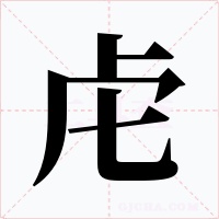 “虍” 字共有 6 画,拼音:hū,注音:ㄏㄨ,部首:虍,笔画数:6 画,字体结构:左上包围结构,五行:木,五笔:HAV,Unicode编码:U+864D,郑码:IHAA,仓颉:YP,“虍”字笔顺为:丨一フノ一フ