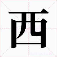 (象形。据小篆字形,上面是鸟的省写,下象鸟巢形。“西”是“栖”的本字。本义:鸟入巢息止)