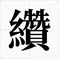 “纘” 字共有 25 画,拼音:zuǎn,注音:ㄗㄨㄢˇ,部首:糹,笔画数:25 画,字体结构:左右结构,五行:火,五笔:XTFM,Unicode编码:U+7E98,郑码:ZMRL,仓颉:VFHUC,“纘”字笔顺为:フフ丶丶丶丶ノ一丨一ノフノ一丨一ノフ丨フ一一一ノ丶