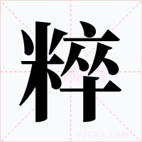 又如:粹毛(纯色的毛);粹正(纯正);粹然(纯正的样子)