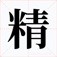 又如:精芒(光芒);精晃晃(形容光亮);精朗(明亮);精全美玉(比喻纯洁完美的人或事物);精剋(廉明克己);精廉(清廉);精息(明白);精色(鲜明的色泽);精沐(清明。清察明审);精尽(明察详尽)
