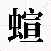 “蝖” 字共有 15 画,拼音:xuān,注音:ㄒㄩㄢ,部首:虫,笔画数:15 画,字体结构:左右结构,五行:金,五笔:JPGG,Unicode编码:U+8756,郑码:IWBK,仓颉:LIJMM,“蝖”字笔顺为:丨フ一丨一丶丶丶フ一丨フ一一一