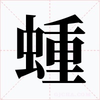 “蝩” 字共有 15 画,拼音:chóng,注音:ㄔㄨㄥˊ,部首:虫,笔画数:15 画,字体结构:左右结构,五行:金,五笔:JTGF,Unicode编码:U+8769,郑码:IMKB,仓颉:LIHJG,“蝩”字笔顺为:丨フ一丨一丶ノ一丨フ一一丨一一