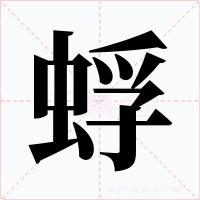 (形声。从虫,孚声。本义:蚍蜉:大蚂蚁)同本义〖mayfly〗。如:蜉蝣羽(比喻只顾目前,不图将来的人);蜉蝣撼大树(比喻自不量力)