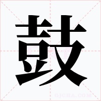 打击乐器之一。一般由两端绷紧皮面的空心圆筒构成,以一根或一对木槌敲击时发出深沉的咚咚声。如:鼓钹(鼓和铙钹。打击乐器);鼓鞞(乐器,分大鼓和小鼓,进军时以励战士);鼓吏(掌鼓的官吏);鼓床(鼓架,鼓座)