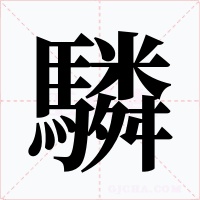 “驎” 字共有 22 画,拼音:lín,注音:ㄌㄧㄣˊ,部首:馬,笔画数:22 画,字体结构:左右结构,五行:火,五笔:COQH,Unicode编码:U+9A4E,郑码:CURM,仓颉:SFFDQ,“驎”字笔顺为:一丨一一丨フ丶丶丶丶丶ノ一丨ノ丶ノフ丶一フ丨