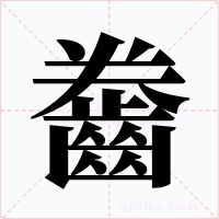 “齤” 字共有 21 画,拼音:quán,注音:ㄑㄩㄢˊ,部首:齒,笔画数:21 画,字体结构:上下结构,五行:火,五笔:UDHB,Unicode编码:U+9F64,郑码:UBIO,仓颉:FQYMU,“齤”字笔顺为:丶ノ一一ノ丶丨一丨一ノ丶ノ丶一ノ丶ノ丶フ丨
