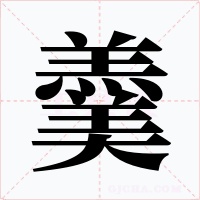 (会意。从羔,从美。古人的主要肉食是羊肉,所以用“羔”“美”会意,表示肉的味道鲜美。用肉或菜调和五味做成的带汁的食物。《说文》:“五味和羹。”按:上古的“羹”,一般是指带汁的肉,而不是汤。“羹”表示汤的意思,是中古以后的事情)