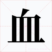 (指事。小篆字形,从皿,“一”象血形。表示器皿中盛的是血。本义:牲血,供祭祀用)