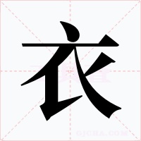 (象形。甲骨文字形。上面象领口,两旁象袖筒,底下象两襟左右相覆,为上衣形。“衣”是汉字的一个部首。从“衣”的字与衣服有关。本义:上衣)