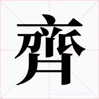 “齊” 字共有 14 画,拼音:qí,注音:ㄑㄧˊ|ㄓㄞ,部首:齊,笔画数:14 画,字体结构:上下结构,五行:金,五笔:YVUF,Unicode编码:U+9F4A,郑码:SYRN,仓颉:YX,“齊”字笔顺为:丶一丶ノ丨フノノフ丶ノ丨一一