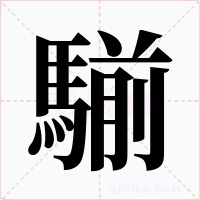 “騚” 字共有 19 画,拼音:qián,注音:ㄑㄧㄢˊ,部首:馬,笔画数:19 画,字体结构:左右结构,五行:火,五笔:CUEJ,Unicode编码:U+9A1A,郑码:CUQK,仓颉:SFTBN,“騚”字笔顺为:一丨一一丨フ丶丶丶丶丶ノ一丨フ一一丨丨