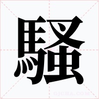 “騷” 字共有 19 画,拼音:sāo,注音:ㄙㄠ,部首:馬,笔画数:19 画,字体结构:左右结构,五行:火,五笔:CCYJ,Unicode编码:U+9A37,郑码:CUSI,仓颉:SFEII,“騷”字笔顺为:一丨一一丨フ丶丶丶丶フ丶丶丨フ一丨一丶