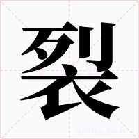 又如:裂帛(撕裂布帛;裁剪布帛作为书信);裂素(裁剪白绢以绘画作文);裂破(撕坏);裂裳(撕裂衣裳)
