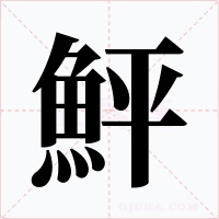 “鮃” 字共有 16 画,拼音:píng,注音:ㄆㄧㄥˊ,部首:魚,笔画数:16 画,字体结构:左右结构,五行:水,五笔:QOGH,Unicode编码:U+9B83,郑码:RAUA,仓颉:NFMFJ,“鮃”字笔顺为:ノフ丨フ一丨一丶丶丶丶一丶ノ一丨