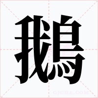 “鵝” 字共有 18 画,拼音:é,注音:ㄜˊ,部首:鳥,笔画数:18 画,字体结构:左右结构,五行:木,五笔:TRNO,Unicode编码:U+9D5D,郑码:MDHR,仓颉:HIHAF,“鵝”字笔顺为:ノ一丨一フノ丶ノ丨フ一一一フ丶丶丶丶