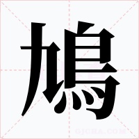 “鳩” 字共有 13 画,拼音:jiū,注音:ㄐㄧㄡ,部首:鳥,笔画数:13 画,字体结构:左右结构,五行:火,五笔:VWVO,Unicode编码:U+9CE9,郑码:QYRZ,仓颉:KNHAF,“鳩”字笔顺为:ノフノ丨フ一一一フ丶丶丶丶