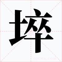 “埣” 字共有 11 画,拼音:suì,注音:ㄙㄨㄟˋ|ㄙㄨˋ,部首:土,笔画数:11 画,字体结构:左右结构,五行:土,五笔:FYWF,Unicode编码:U+57E3,郑码:BSOE,仓颉:GYOJ,“埣”字笔顺为:一丨一丶一ノ丶ノ丶一丨