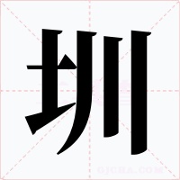 “圳” 字共有 6 画,拼音:zhèn,注音:ㄓㄣˋ,部首:土,笔画数:6 画,字体结构:左右结构,五行:土,五笔:FKH,Unicode编码:U+5733,郑码:BND,仓颉:GLLL,“圳”字笔顺为:一丨一ノ丨丨