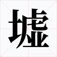(本作“虚”。形声。从土,虚声。本义:大土山)