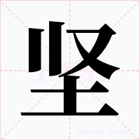 (会意。从臤(qiān),从土。“臤”,金文象以手拉“臣”(屈服的奴隶)。从“土”,表示土质坚硬。本义:泥土坚硬)