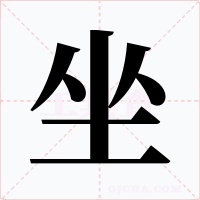 (会意。《说文》古文作象形字,象两人坐在土上。本义:人的止息方式之一。古人席地而坐,坐时两膝着地,臀部压在脚跟上)