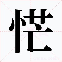 “恾” 字共有 9 画,拼音:máng,注音:ㄇㄤˊ,部首:忄,笔画数:9 画,字体结构:左右结构,五行:水,五笔:NAYN,Unicode编码:U+607E,郑码:UESH,仓颉:PTYV,“恾”字笔顺为:丶丶丨一丨丨丶一フ