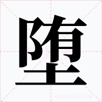 “堕” 字共有 11 画,拼音:duǒ,huī,注音:ㄉㄨㄛˋ|ㄏㄨㄟ,部首:土,笔画数:11 画,字体结构:上下结构,五行:土,五笔:BDEF,Unicode编码:U+5815,郑码:YGQB,仓颉:NBG,“堕”字笔顺为:フ丨一ノ丨フ一一一丨一
