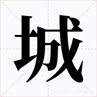 同本义〖citywall〗。都邑四周用作防御的高墙。一般分两重,里面的叫城,外面的叫郭,城字单用时,多包含城与郭。城郭对举时,只指城