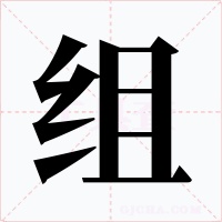 又如:组帐(系以丝带的华丽帷帐);组缨(系冠的丝带);组紃(丝绳带);组带(丝织系带);组就(古代冕旒上彩色丝绳串)