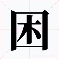 “困” 字共有 7 画,拼音:kùn,注音:ㄎㄨㄣˋ,部首:囗,笔画数:7 画,字体结构:全包围结构,五行:木,五笔:LSI,Unicode编码:U+56F0,郑码:JDF,仓颉:WD,“困”字笔顺为:丨フ一丨ノ丶一