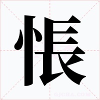 “悵” 字共有 11 画,拼音:chàng,注音:ㄔㄤˋ,部首:忄,笔画数:11 画,字体结构:左右结构,五行:金,五笔:NDEY,Unicode编码:U+60B5,郑码:UCH,仓颉:PSMV,“悵”字笔顺为:丶丶丨一丨一一一フノ丶