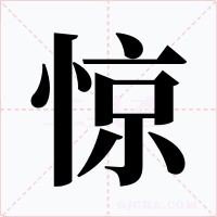 惊讶;惊奇〖surprised;amazed〗。如:惊厄(惊险;惊困);惊诧(惊讶诧异);惊乍(惊恐不安);惊悼(惊异痛伤)