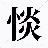 “惔” 字共有 11 画,拼音:tán,注音:ㄊㄢˊ|ㄉㄢˋ,部首:忄,笔画数:11 画,字体结构:左右结构,五行:火,五笔:NOOY,Unicode编码:U+60D4,郑码:UUUO,仓颉:PFF,“惔”字笔顺为:丶丶丨丶ノノ丶丶ノノ丶