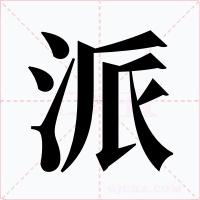 人物、事物的系统、流别〖school;faction〗。如:派演天潢(宗族的支派。天潢:皇族);党派;左派;新派;旧派;宗派;死硬派;保守派;宫廷派;派衍(宗教支派,繁衍)