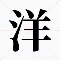 “洋” 字共有 9 画,拼音:yáng,注音:ㄧㄤˊ,部首:氵,笔画数:9 画,字体结构:左右结构,五行:水,五笔:IUDH,Unicode编码:U+6D0B,郑码:VUC,仓颉:ETQ,“洋”字笔顺为:丶丶一丶ノ一一一丨