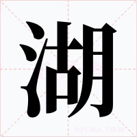 (形声。从水,胡声。本义:陆地上聚积的大水体)