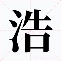 水大,引申为大和多:浩大。浩繁。浩荡。浩瀚。浩劫。浩淼(亦作“浩渺”)。浩气(盛大刚直之气)。浩如烟海。