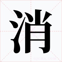 溶化,散失:烟消云散。消融(亦作“消溶”)。消失。消逝。消亡。消沉。消极。消化。