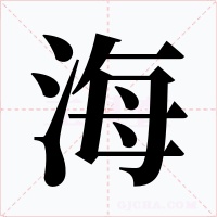 “海” 字共有 10 画,拼音:hǎi,注音:ㄏㄞˇ,部首:氵,笔画数:10 画,字体结构:左右结构,五行:水,五笔:ITXU,Unicode编码:U+6D77,郑码:VMZY,仓颉:EOWY,“海”字笔顺为:丶丶一ノ一フフ丶一丶