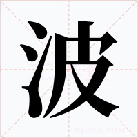 又如:波磔(向右下捺的一笔叫磔,波浪形的叫波磔);波查(苦难;折磨);波平如镜(水面平静如镜);波臣为虐(指水灾);波骇(水波激烈动荡。引申为受到震撼);波峭(指岩石或屋宇的曲折峻峭。后用以形容人物的威仪俊伟有风致)