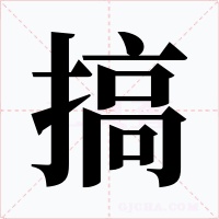 “搞” 字共有 13 画,拼音:gǎo,注音:ㄍㄠˇ,部首:扌,笔画数:13 画,字体结构:左右结构,五行:木,五笔:RYMK,Unicode编码:U+641E,郑码:DSJL,仓颉:QYRB,“搞”字笔顺为:一丨一丶一丨フ一丨フ丨フ一