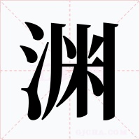 深水,潭:渊水。渊谷。渊林。渊薮(“渊”,鱼所聚处;“薮”,水边草地,兽所聚处;喻人或事物聚集的地方)。深渊。临渊羡鱼(喻只作空想,不作实际工作)。