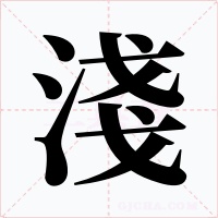 “淺” 字共有 11 画,拼音:qiǎn,注音:ㄑㄧㄢˇ,部首:氵,笔画数:11 画,字体结构:左右结构,五行:水,五笔:IAAT,Unicode编码:U+6DFA,郑码:VHHM,仓颉:EII,“淺”字笔顺为:丶丶一一フノ丶一フノ丶