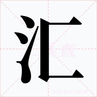 河流会合〖conflow〗。如:汇涌(汇集涌流);汇粹(荟萃。会集,聚集);汇濊(水流深广的样子)