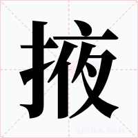 “掖” 字共有 11 画,拼音:yè,yē,注音:ㄧㄝˋ|ㄧㄝ,部首:扌,笔画数:11 画,字体结构:左右结构,五行:土,五笔:RYWY,Unicode编码:U+6396,郑码:DSNR,仓颉:QYOK,“掖”字笔顺为:一丨一丶一ノ丨ノフ丶丶