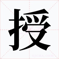 又如:授受(交接;交付和接受);授兵(把武器给战士);授官厅(官府;衙门);授玉(给予玉圭);授室(把家事交给新妇);授赏(奖赏);授简(给予简札);授以全权;授位(授予职位);授政(授予帝位)