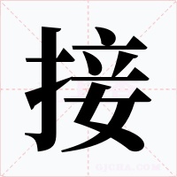 “接” 字共有 11 画,拼音:jié,jiē,注音:ㄐㄧㄝ,部首:扌,笔画数:11 画,字体结构:左右结构,五行:火,五笔:RUVG,Unicode编码:U+63A5,郑码:DSZM,仓颉:QYTV,“接”字笔顺为:一丨一丶一丶ノ一フノ一