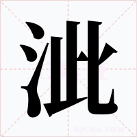 “泚” 字共有 9 画,拼音:cǐ,注音:ㄘˇ,部首:氵,笔画数:9 画,字体结构:左右结构,五行:水,五笔:IHXN,Unicode编码:U+6CDA,郑码:VIRR,仓颉:EYMP,“泚”字笔顺为:丶丶一丨一丨一ノフ