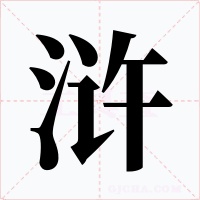 (形声。从水,许声。本义:水边,指离水稍远的岸上平地)
